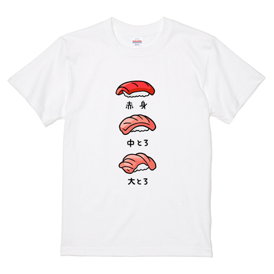 Tシャツ 【マグロ寿司の赤身中とろ大とろ】tsukamotojunkoデザイン