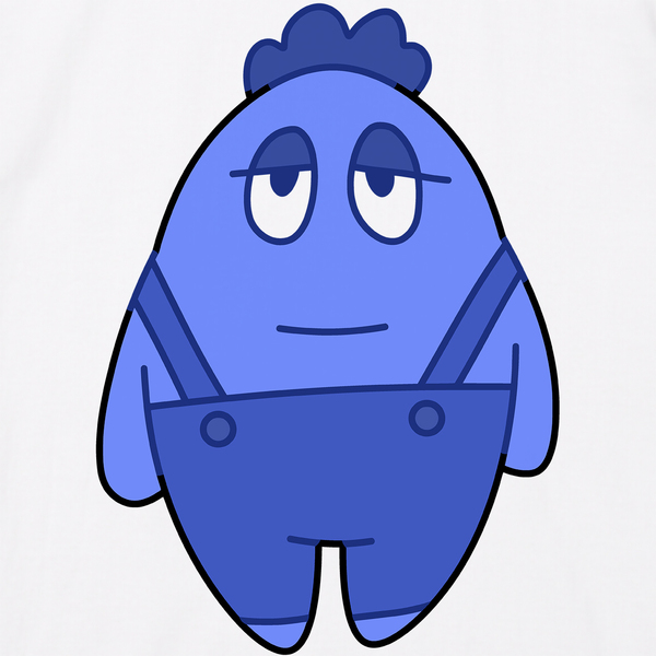 棒立ちしてる青いキャラクターのデザインTシャツです。
