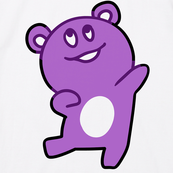 ダンスをしている紫色の熊のデザインTシャツです。