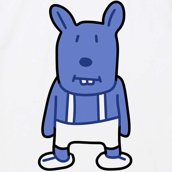 疲れた表情の青いネズミのデザインTシャツです。